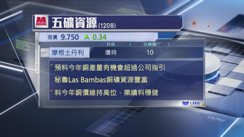 【Now財經台】摩根士丹利預期,五礦資源(01208)今年銅產量或超預期。