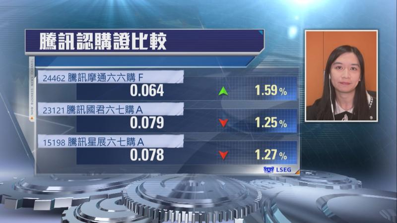 【Now財經台】騰訊控股(00700)近日沒有特別消息,今早(23日)曾升近1%至602元,之後明顯回落,走勢偏軟。騰訊好倉受追捧,是5日合計最多資金坐貨單頭,有超過1.1億元,一些熱門CALL,行使價約750元至800元,槓桿有9-12倍,另一種擺位更近,行使價約620元至680元,槓桿有5-7倍,分別適合甚麽投資者?