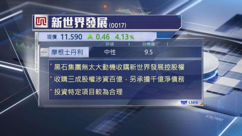 該行指,雖然新世界通告未有明確否認傳聞,但認為黑石收購新世界控股權的動機不強。
