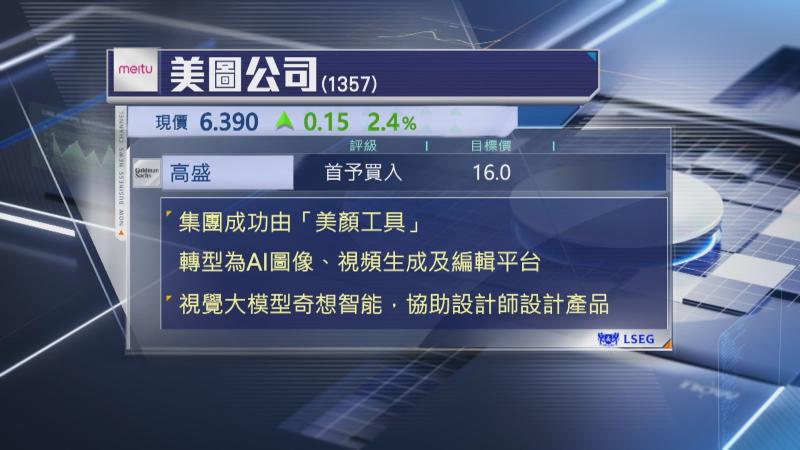 該行給予美圖「買入」評級,目標價16元,相當於2027年預測市盈率(PE)33.1倍。高盛指,美圖由「美顏工具」成功轉型為人工智能(AI)圖像、視頻生成及編輯平台,客戶由大眾消費者擴展至企業層面,例如電商及廣告行業,帶動付費用戶上升。