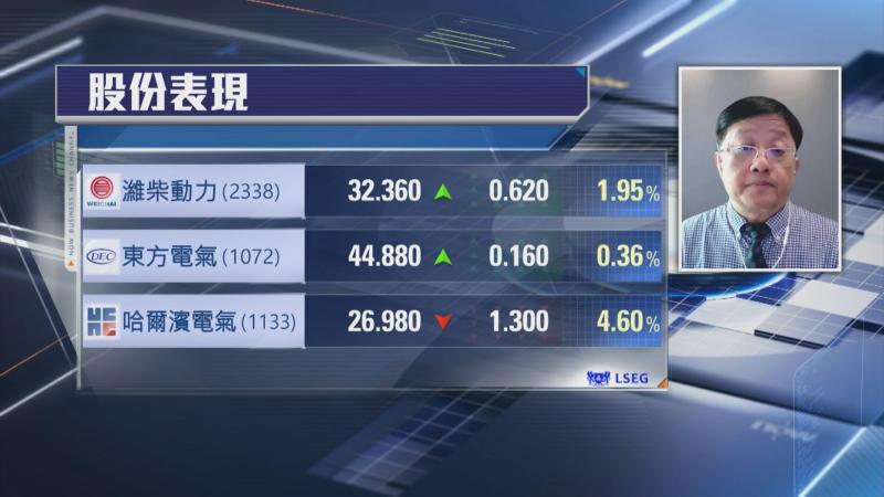 【Now財經台】美以伊戰事發展左右環球投資市場大局,亂局下要精準揀股絕對唔易,近期熱炒嘅電力設備股,例如東方電氣(01072)、哈爾濱電氣(01133),以及人工智能(AI)相關股濰柴動力(02338)係咪可以繼續睇好?