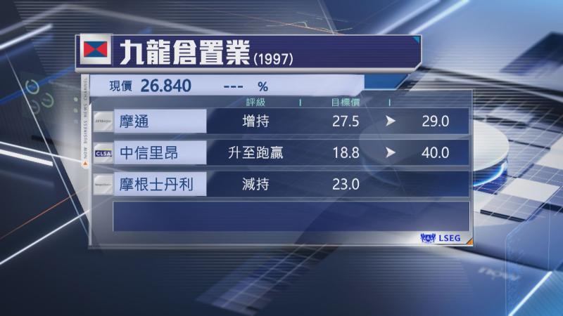 【Now財經台】九龍倉置業(01997)公布業績後,獲摩根大通及中信里昂調升目標價。