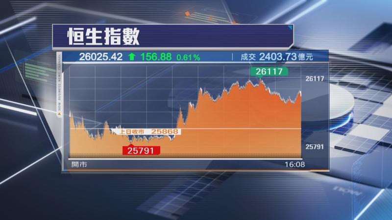 【Now財經台】恒生指數升逾100點,企穩在26000水平,連升第3日。
