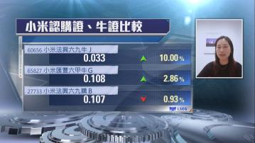 法興證券上市產品銷售部董事蔡秀虹指,小米近日喺一個較低嘅區間整固,較多資金用牛證做部署,避開引伸波幅下跌,暫時距離現貨價6%至8%嘅小米牛證,槓桿約10倍。