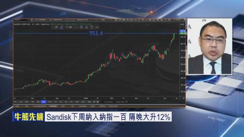 【Now財經台】繼美國銀行股後,科技股會接力派成績表,市場對硬件企業嘅業績有頗大期望,點預測美國科技股業績?此外,全球NAND快閃記憶體企業SanDisk晉身納指100,將會喺下周生效,刺激股價昨晚(13日)飆逾10%,今年以嚟已累升約3倍,仲值唔值得高追?