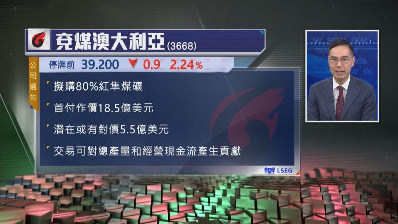 【Now財經台】兗煤澳大利亞(03668)斥資18.5億美元,收購昆士蘭紅隼煤礦80%權益。