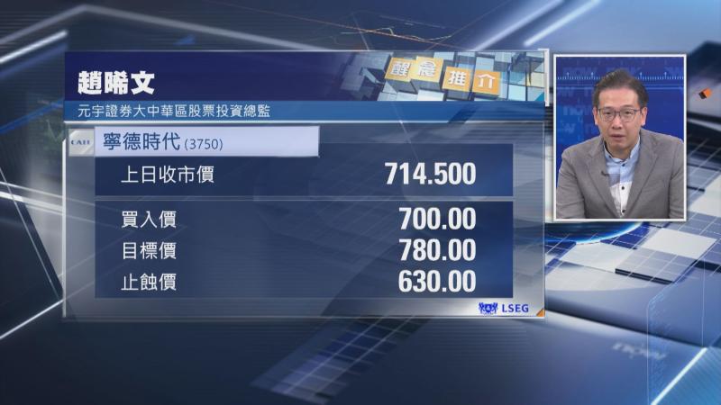 【Now財經台】元宇證券大中華區股票投資總監趙晞文推介寧德時代(03750)