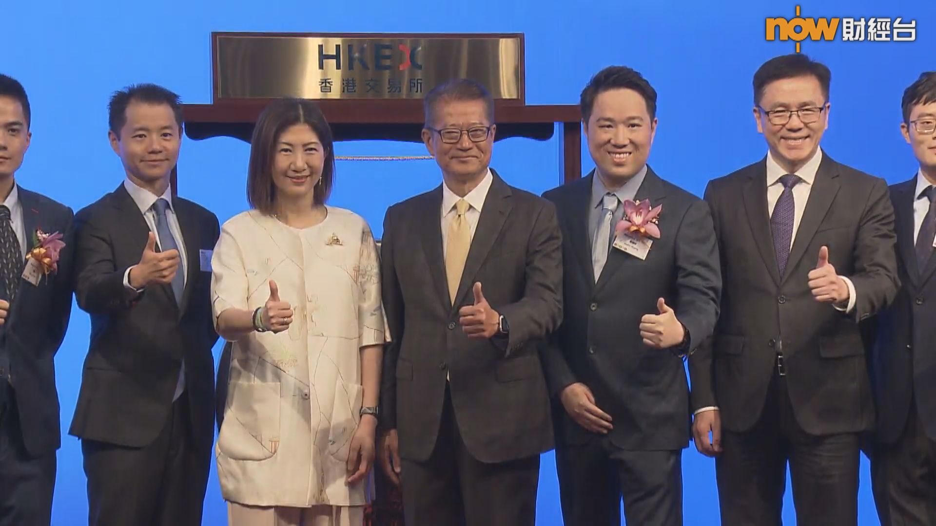 出席上市儀式包括財政司司長陳茂波、創新科技及工業局局長孫東,以及港交所(00388)行政總裁陳翊庭。