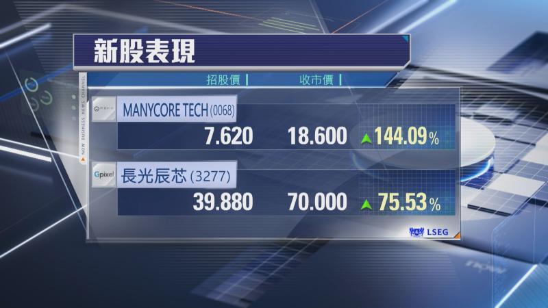【Now財經台】兩隻新股今日(17日)首日掛牌,股價顯著造好,當中包括「杭州六小龍」之一群核科技(Manycore Tech)(00068),群核科技收市報18.6元,高逾1.4倍,每手500股,不計手續費,1手帳賺5490元。至於圖像傳感器供應商長光辰芯(03277)收市報70元,高逾75%,每手100股,不計手續費,1手帳賺3012元。群核科技管理層表示,未來會以香港作為起點,拓展國際業務。