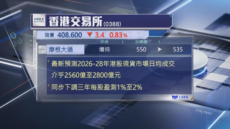 摩通最新調整2026至2028年港股現貨市場日均成交預測至介乎2560至2800億元,並因應下調同期每股盈利預測1%至2%。
