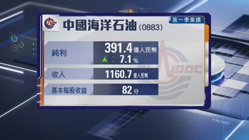 【Now財經台】中國海洋石油(00883)首季多賺7%,略遜預期。