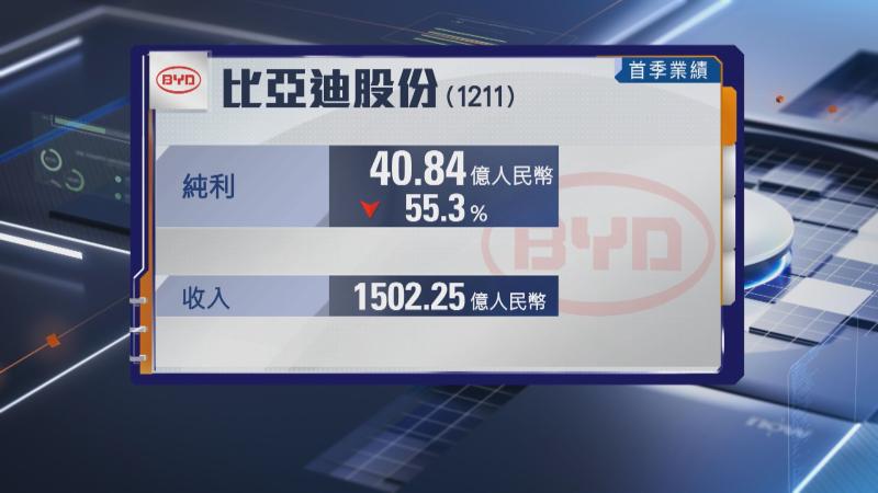 【Now財經台】比亞迪股份(01211)首季少賺55%。