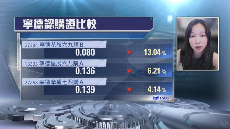 花旗上市衍生產品部副總裁麥穎儀指,依家寧德股價落到3月底低位,吸引唔少投資者入場,今日即市資金都趁再回套繼續留意好倉,條款選擇都唔少,要高槓桿、低銀碼就要揀到相對價外少少嘅產品,建議可選擇行使價1000元以外,今年9月中旬到期,實際槓桿做到7.5倍,雖然呢類CALL較價外,但較受投資者歡迎,如果對寧德後市走勢有期待,可以考慮類似產品做好倉部署。