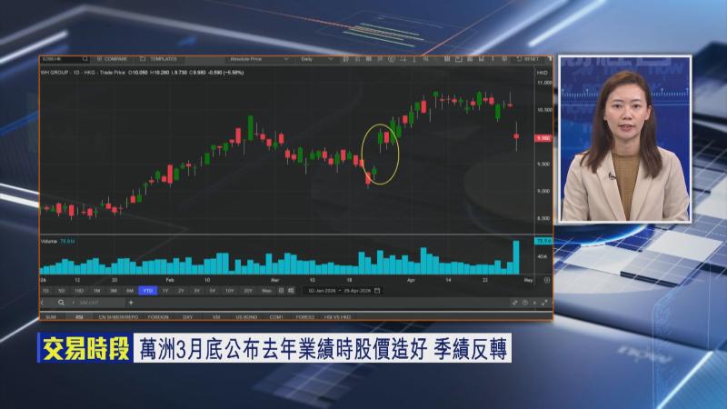 股價方面,Tracy就話,萬洲業績後受壓,主要係市場之前已對業績有憧憬,所以放榜後就出貨,喺消費品板塊中,萬洲盈利能見度有所提升,又增加派息,股息率超過9厘,投資者可以兼顧到收息及股價增值,股價今日大幅調整,可以等股價喘定後,考慮做長線部署。