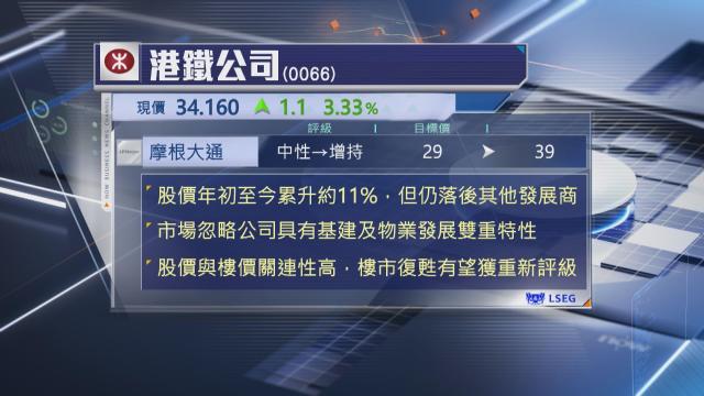 【大行報告】摩通:港鐵估值較環球同業吸引
